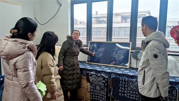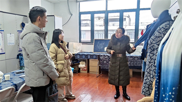 随后,朱守兵调研员、白洁主任一行来到荆楚纺织非遗传统印染科普教育基地建设承担单位武汉染语非物质文化传播有限公司,王妮副教授详细介绍了公司团队荆楚蓝染工艺研究成果和科普传播工作成效。